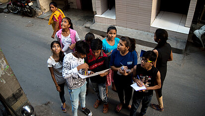 Die Mädchen und andere Gemeindemitglieder dokumentieren die Qualität der städtischen Dienste. Die Projektteams beobachten daraufhin Fortschritte im Hinblick auf den Schutz und die Sicherheit von Mädchen.