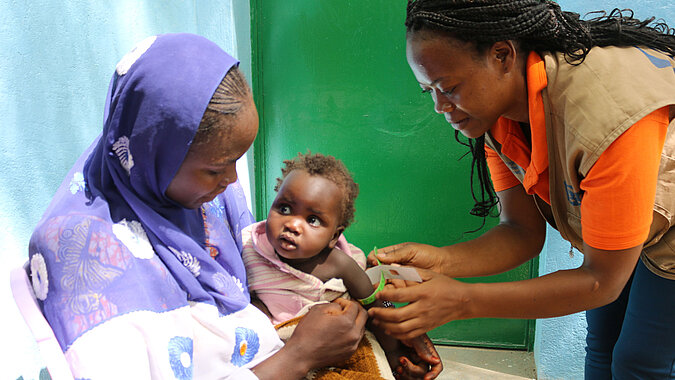 - Verbesserung der Gesundheitsversorgung: Wir schulen gezielt Gesundheitshelferinnen und -helfer bei der Behandlung von Kindern, die von Mangelernährung bedroht oder bereits betroffen sind. Wir verbinden unsere Aufklärungsarbeit in den Ländern eng mit Programmen zur Verbesserung der Hygiene- und Sanitärversorgung sowie Zugang zu sauberem Trinkwasser.