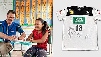 Zum diesjährigen TAG DES HANDBALLS in Hannover signieren der ehemalige Handball-Weltmeister Dominik Klein und die Handball-Nationalmannschaft der Männer ein Originaltrikot. Die Erlöse der Aktion fließen in das Plan-Projekt "Sport schafft sichere Schulen in Hanoi", welches auch vom Deutschen Handballbund (DHB) unterstützt wird.