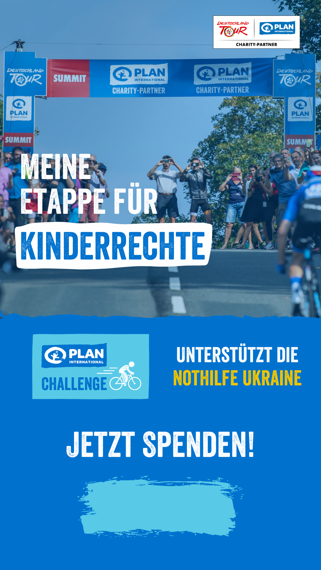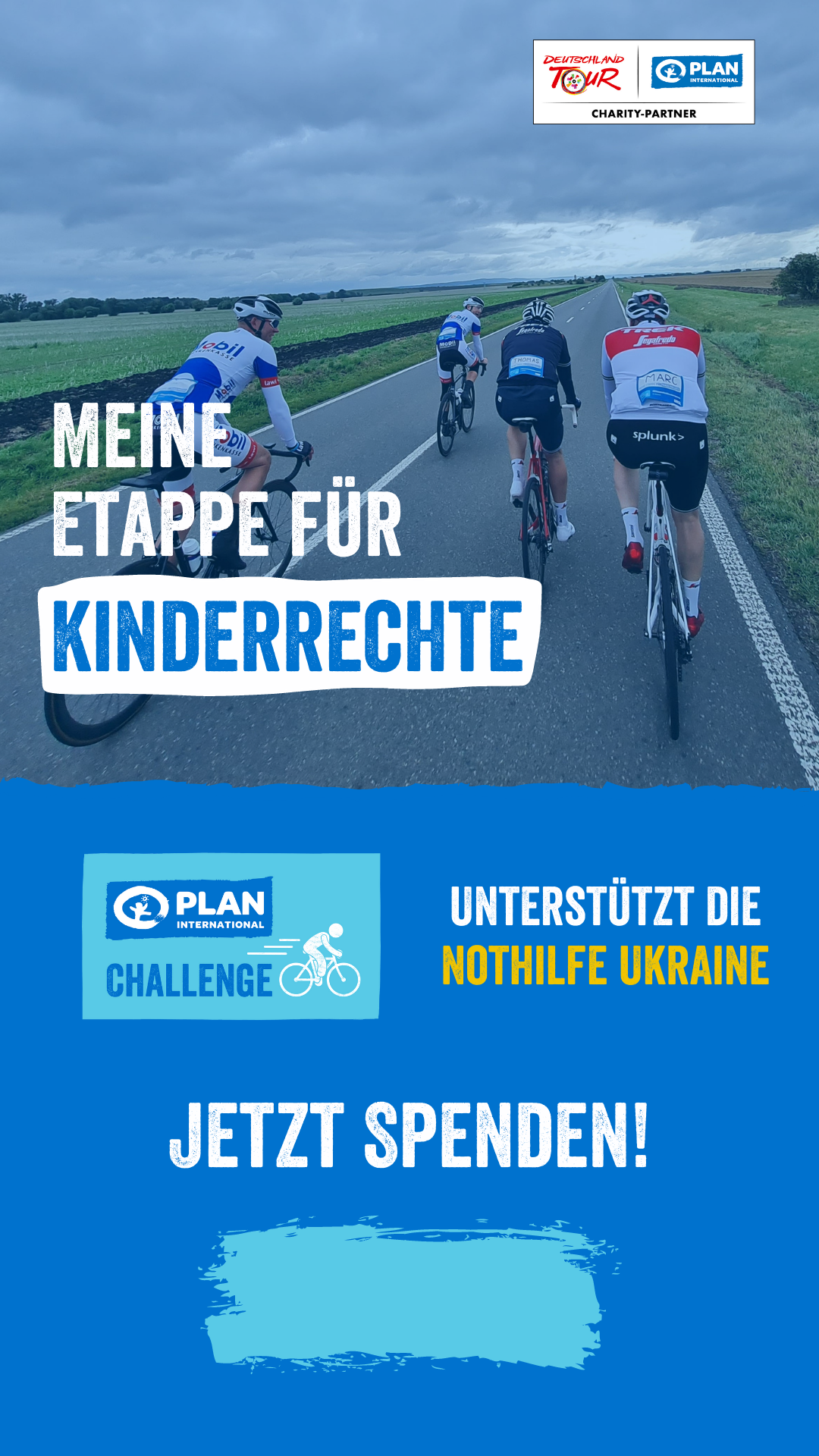 Mit diesen Bildern kannst Du Deine Spendenaktion unter #EtappeFürKinderrechte auf Facebook, Instagram, Twitter, Strava oder WhatsApp bewerben.