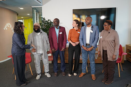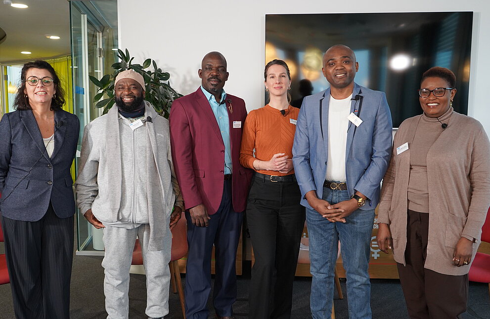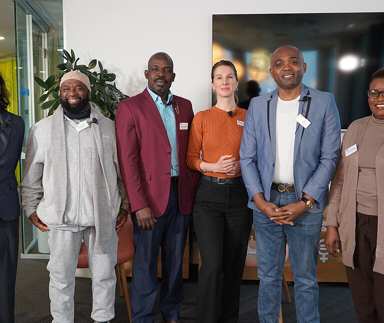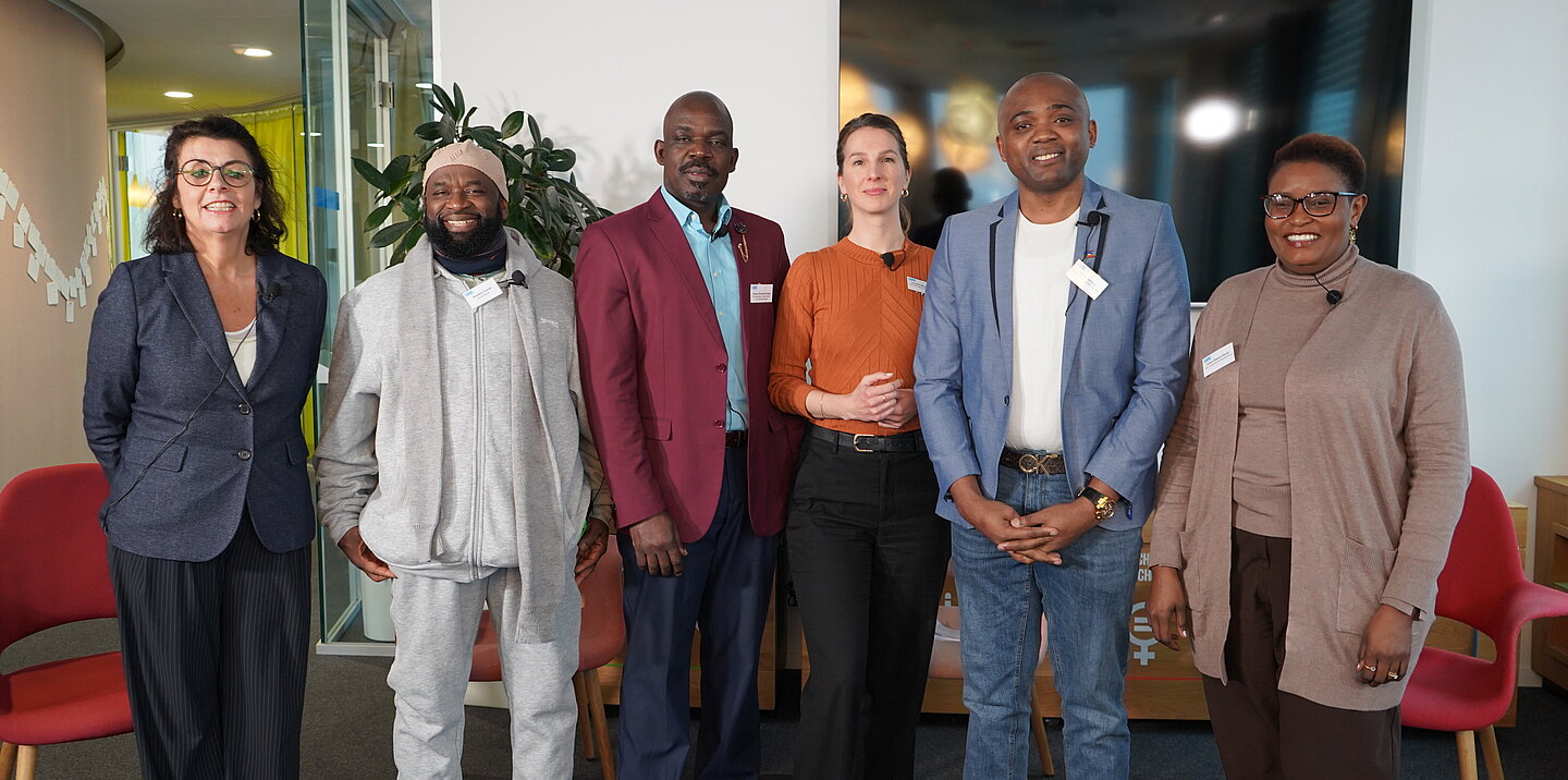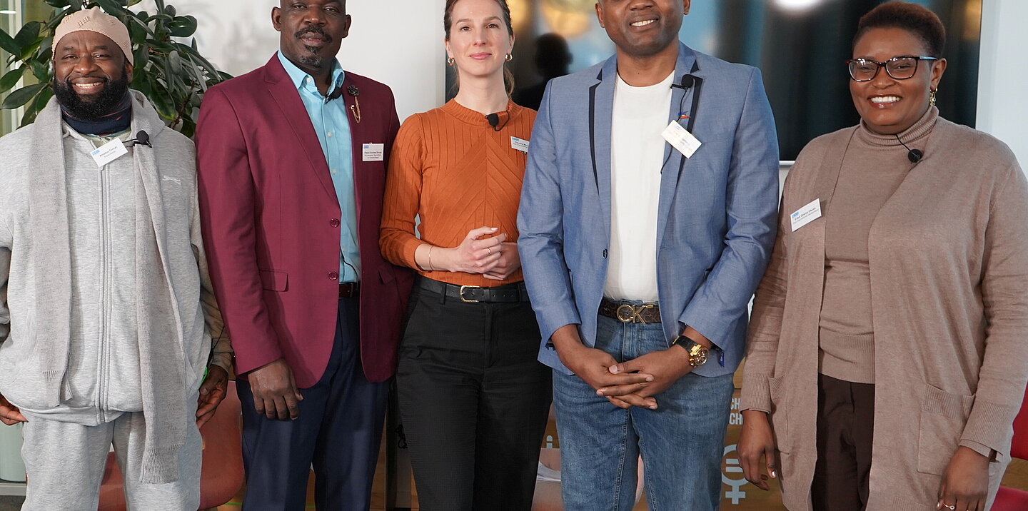Auf dem Podium diskutierten Amadou Corrah, Koranlehrer aus Gambia, der heute in Bremen lebt und innerhalb religiöser Gemeinschaften Aufklärungsarbeit gegen FGM/C leistet, sowie Pastor Andrew Buraje aus Kenia, Theologe, Gesundheits- und Krankenpfleger, der in Nordrhein-Westfalen lebt und Glauben, medizinische Prävention und Kinderschutz miteinander verbindet. Ebenfalls auf dem Podium saß Franz Kapnang, Betriebswirt aus Kamerun, der sich seit vielen Jahren als Aktivist gegen FGM/C engagiert und gemeinsam mit seiner Frau den Berliner Verein Mama Afrika leitet. Künstlerische und aktivistische Perspektiven brachte Bai Babou ein – Musiker und Rapper aus Gambia, der mit seiner Musik Aufklärung über weibliche Genitalverstümmelung und Zwangsheirat betreibt. Komplettiert wurde das Panel durch Edell Otieno-Okoth, Referentin für FGM/C bei Plan International Deutschland. Sie brachte die fachliche Einordnung sowie die Perspektive der Programm- und Präventionsarbeit in Deutschland ein.