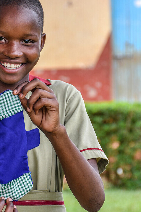 Hellen hat in der Schule das erste Mal von dem Thema gehört. Seit sie im Schulclub ist, fühlt sie sich im Umgang mit ihrer Menstruation inzwischen deutlich selbstbewusster. „Es hat mir geholfen, damit gut umzugehen“, sagt sie. „Wenn es so weit ist, weiß ich, was zu tun ist.“ Zuhause hat die 15-Jährige allerdings Probleme, sich ausreichend zu versorgen. Ihre Eltern können es sich nicht leisten, Binden zu kaufen, weshalb Hellen während ihrer Periode regelmäßig Blut von ihrer Kleidung waschen muss. „Jedes Mal habe ich das Gefühl, dass ich Seife missbrauche. Mein Vater beschwert sich immer, dass ich meine Kleidung zu oft wasche“, sagt Hellen.