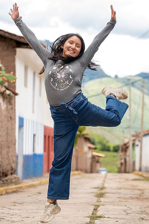 „Diese Aktivitäten geben mir ein gutes Gefühl, weil ich Frauen, Mädchen und Jugendlichen dabei helfe, sichere Räume zu schaffen, in denen sie sich frei und ungezwungen ausdrücken können“, sagt die 15-Jährige stolz. Mitzy hat erreicht, dass Mädchen jetzt zusammen mit Jungen Fußball spielen, und dass Jungen ohne Angst vor Verurteilung ihre Begeisterung für Volleyball ausleben können – einer Sportart, die in Peru eher mit Frauen assoziiert wird.