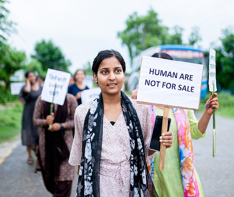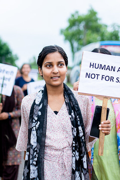 Die zwei Themen, die Rahimat besonders am Herzen liegen, sind Kinderheirat und Menschenhandel – beides ernste Probleme in ihrem abgelegenen Dorf. Es liegt an der Grenze zu Indien und es kommt nicht selten vor, dass Mädchen und Frauen Jobs und Heiratsangebote jenseits der Grenze versprochen werden, die es gar nicht gibt. In Wirklichkeit werden sie oft in die Zwangsarbeit oder Prostitution verkauft (lesen Sie hierzu auch die Geschichte von Kabita).