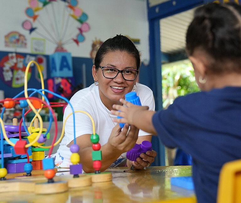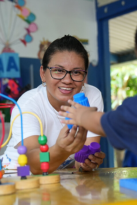 In Chalatenango gibt es inzwischen 19 aktive Programm-Zentren. Hier lernen Kinder und ihre Betreuungspersonen in einem sicheren Umfeld mehr über positive Erziehung, frühkindliche Förderung und Kinderschutz. Nancy ist überzeugt, dass ein liebevolles Lernumfeld die Zukunft von Kindern prägen kann. „Am schönsten finde ich, dass die Kinder so voller Freude sind und diese Freude weitergeben. Ihre Stimmen zu hören, macht mich glücklich. Meine Arbeit gibt mir unglaublich viel zurück.“