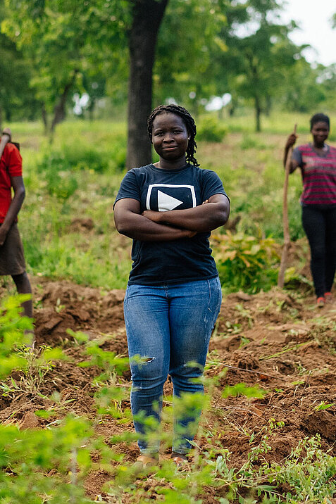 Doris Siibu (27) bewirtschaftet in der Region 14 Hektar Ackerland mit Mais und Sojabohnen. Für sie ist die Landwirtschaft ihr Beitrag, um gegen die Mangelernährung in ihrer Heimat vorzugehen. „Meine Farm soll der Gesundheit meiner Gemeinde dienen“, sagt sie mit entschlossener Miene. „Die beliebtesten Mahlzeiten werden aus Mais hergestellt: es sind Banku und Tou Zaafi (Maisklöße und -brei). Wenn ich also den Hunger unter meinen Mitmenschen stoppen will, sollte ich das liefern, wovon sie am meisten essen.“