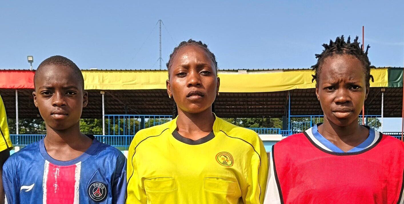 Ein schriller Pfiff schallt durch die heiße nachmittägliche Luft von Kankan, Guinea. Kinder jubeln am Spielfeldrand, Fußballspielende rufen durcheinander. In der Mitte steht Yawa, 21 Jahre alt, die Pfeife fest zwischen die Finger geklemmt. Sie hebt die Hand, deutet weiterzuspielen. Für sie ist das kein gewöhnliches Match. Jeder Pfiff ist ein Schritt hin zu mehr Chancengleichheit auf und neben dem Platz.