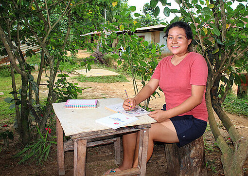 Die 16-jährige Zue hat es in ihrem Leben nicht immer leicht gehabt. Nach der Trennung ihrer Eltern zog Zue mit ihrer Mutter in einen anderen Teil der Region Loreto in Peru. Trotz der wirtschaftlichen Probleme ihrer Familie behielt sie ihren Fokus auf Bildung, in der Hoffnung, so auf dem Weg in eine bessere Zukunft zu sein.