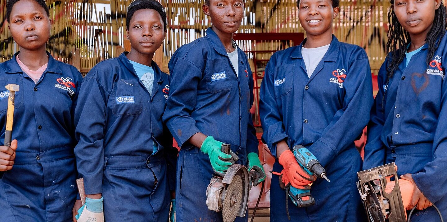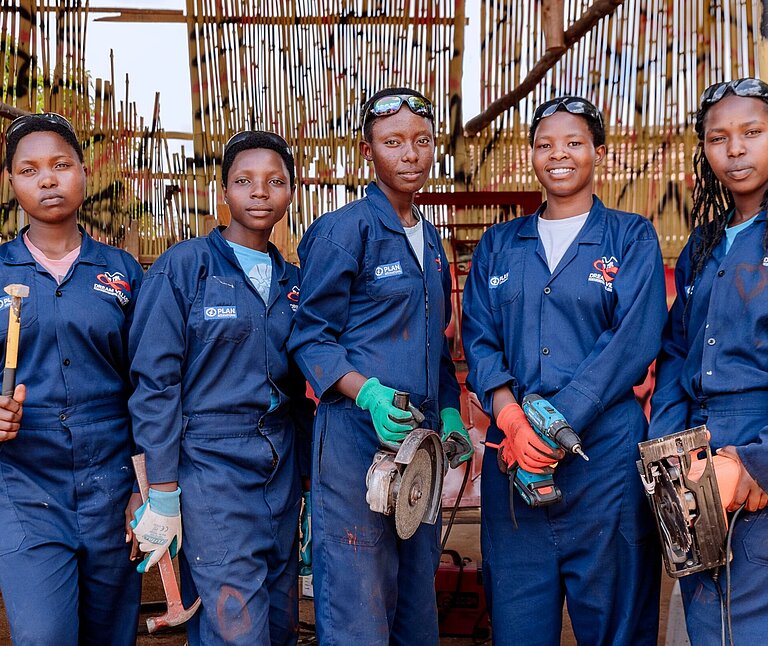 Um mehr jungen Menschen ein eigenes Einkommen zu sichern, hat Plan International zusammen mit einer lokalen Partnerorganisation im Bezirk Bugesera ein Ausbildungszentrum eröffnet. Dort bieten Fachleute Schulungen in den Bereichen Schweißen, Friseurhandwerk, Elektrik und Schneiderei an – speziell für junge Menschen, die sonst nicht die Möglichkeit einer Ausbildung hätten. Ziel ist es, sie zur Selbstständigkeit zu motivieren und mit den nötigen Fähigkeiten, Informationen und Netzwerken auszustatten, die sie für die Gründung eigener Unternehmen brauchen. Wie diese Initiative gleichzeitig Geschlechterstereotypen aufbricht, zeigen die Geschichten von Yasin und Valens: