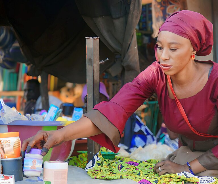 Mariétou hat das Geld gut genutzt. „Ich habe mit dem Betrag Kosmetikprodukte gekauft und angefangen, sie zu verkaufen“, erzählt sie stolz. „Mein erster Verkauf war ein Erfolg. Es gelang mir, alle meine Waren zu verkaufen und einen Umsatz von 375 Euro zu erzielen. Diesen Betrag habe ich dann wieder investiert, um weitere Artikel zu kaufen.“