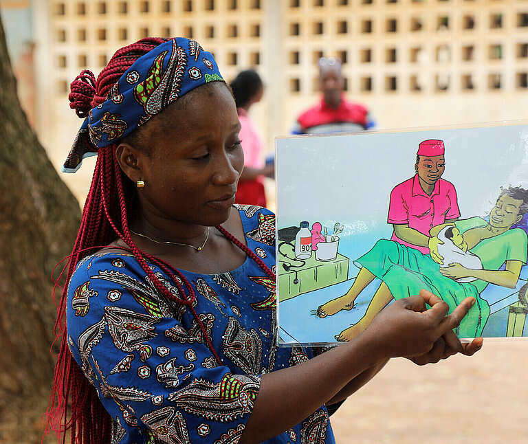 Genau hier versucht Sonia mit ihrer Arbeit anzusetzen. Ihre Aufgabe ist es, Mütter in ihrer ländlichen Gemeinde dafür zu sensibilisieren, wie wichtig es ist, auf ihre Gesundheit und die ihrer Kinder zu achten. Leichter gesagt als getan. Als sie anfing zu arbeiten, weigerten sich viele Familien, Sonias Unterstützung anzunehmen. Ihre Hausbesuche wurden abgewiesen – vielleicht aus Berührungsängsten oder Misstrauen. Nur vier von zehn schwangeren Frauen nahmen die prä- und postnatalen Beratungen in Anspruch. Dabei will die Togolesin nichts lieber als helfen – daran gehindert zu werden, fordert ihr viel ab. „Am Anfang war es eine Herausforderung, das Vertrauen der Eltern zu gewinnen“, sagt sie. Doch sie ist entschlossen, ihr Leben der Gesundheit und dem Wohl ihrer Gemeinde zu widmen.