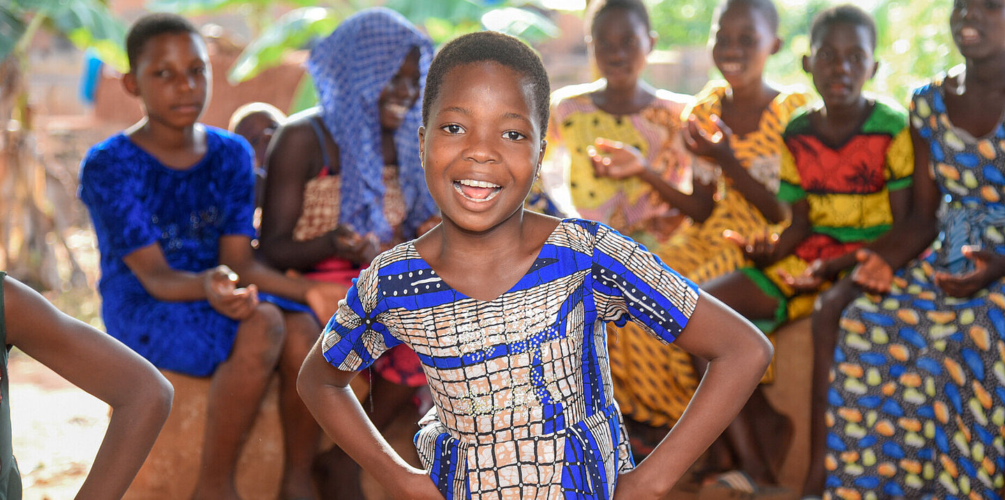 Anne wirbelt in ihrem blauen Kleid herum, die Hände in die Hüften gelegt, mit einem breiten Lächeln im Gesicht. Ein Bild voller Lebensfreude – bis vor Kurzem noch unvorstellbar. Denn erst vor wenigen Monaten konnte die Zwölfjährige aus Benin weder laufen noch sprechen.