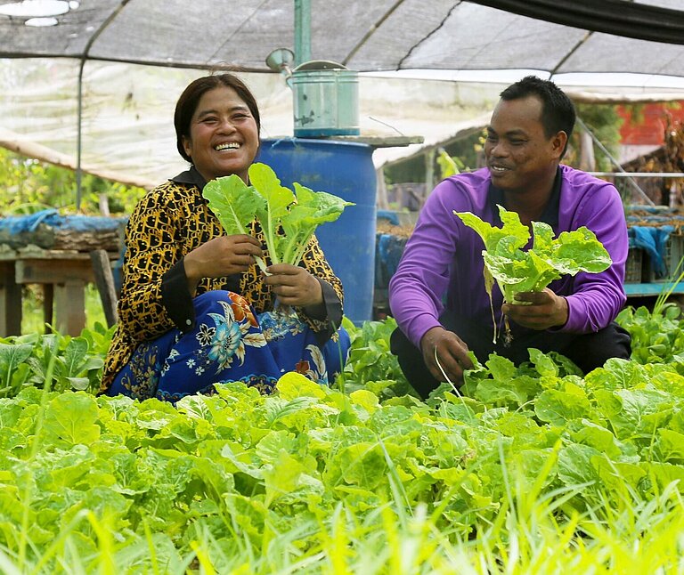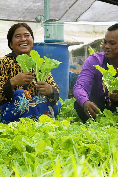 Im frischen Blattgrün stecken nicht nur viele Vitamine, sondern auch das große Ziel, Kinderträume zu ermöglichen. Don (37) arbeitet seit 2021 entschlossen in seiner Kooperative – eine Gemeinschaft von inzwischen 193 Mitgliedern. Neben der Ernte, die sie gemeinsam einfahren, versorgen sie Schulen mit gesunden Nahrungsmitteln und ebnen zugleich Familien im Norden Kambodschas den Weg zur Bildung ihrer Kinder.