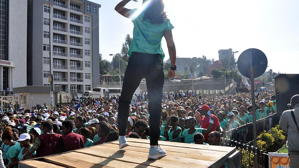Ob als Zuschauerin oder Sportlerin - anlässlich des Welt-Frauentags, schlossen sich Anfang März über 7.000 Äthiopierinnen zusammen, um in ihrer Hauptstadt Addis Ababa auf die globalen Ziele der Because I am a Girl-Kampagne von Plan International aufmerksam zu machen.Mit der <link https: www.plan.de kampagnen-und-aktionen because-i-am-a-girl-fuer-die-rechte-von-maedchen.html external-link-new-window external link in new>Kampagne unterstützt Plan International Mädchen dabei, gleichberechtigt aufzuwachsen und zum Beispiel ihr Recht auf Bildung wahrzunehmen. Denn erst wenn Mädchen ihre Schulbildung abschließen können, haben sie eine Aussicht darauf, ihre Zukunft selbstbestimmt zu gestalten.
