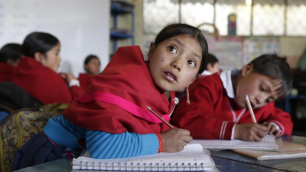 Jenny ist sieben Jahre alt. Sie lebt in den Anden in einem kleinen Dorf 4.000 Meter über dem Meeresspiegel. Die Gegend ist eine der ärmsten in <link http: www.plan.de plan-in-lateinamerika ecuador.html external-link-new-window external link in new>Ecuador. Bildung kann der Weg aus der Armut sein - gerade deshalb ist die Schule auch so wichtig.