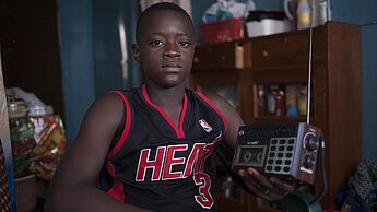 Mariama lebt mit ihrer Mutter und ihren sieben Geschwistern zusammen. Das Notfall-Unterrichts-Programm ist gut, um sich zu beschäftigen und es hilft, beim Lernen nicht zurück zu bleiben. "Der Ausbruch von Ebola trifft uns wirklich. Besonders Mädchen leiden sehr. Viele meiner Freundinnen werden nicht mehr zur Schule zurückgehen, weil sie mittlerweile schwanger geworden sind", sagt Mariama. Wenn sie nicht gerade Radio hört, hilft Mariama ihrer Mutter mit der Hausarbeit. Bis jetzt hat Ebola noch niemanden aus ihrer Familie getroffen. "Wir hören auch Radio, um uns zu informieren und folgen den Anweisungen, um uns zu schützen", erklärt sie.