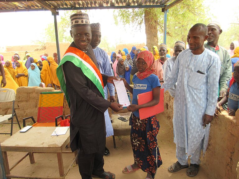 Plan International unterstützt den Ausbau von Gesundheitsdiensten und Beratungsangeboten in Niger. Wir stärken gemeindebasierte Initiativen wie Gemüsegärten und Viehzucht und informieren über Methoden der klimaresistenten Landwirtschaft. Zudem sprechen wir mit Eltern über positive Erziehung und sensibilisieren sie für die Risiken von Frühverheiratung.