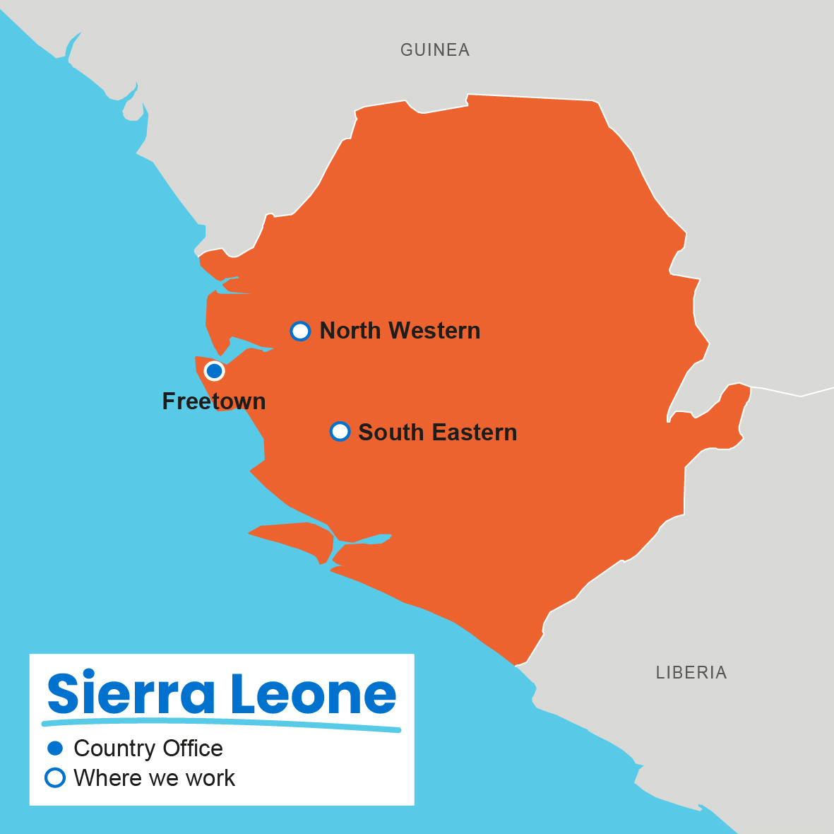 Sierra Leone liegt an der Westküste Afrikas. Von 1808 bis zur Unabhängigkeit im Jahr 1961 war das Land eine britische Kronkolonie. Englisch ist die Amtssprache in Sierra Leone, doch die meistgesprochene Sprache ist Krio. Sie verbindet alle 16 ethnischen Gruppen des Landes. Sierra Leone ist reich an Bodenschätzen. Daher stellt der Bergbau, insbesondere der Abbau von Diamanten, eine wichtige wirtschaftliche Grundlage dar. Der Bürgerkrieg und die Ebola-Epidemie haben das Land in seiner jüngeren Geschichte schwer getroffen. Plan International arbeitet seit 1976 in Sierra Leone, insbesondere für und mit Mädchen und jungen Frauen. Helfen Sie mit Ihrer Spende, die Lebenssituation für die Kinder und Familien zu verbessern.