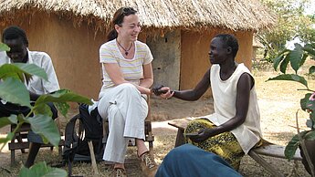 Pulkeria und die anderen Frauen begrüßen mich mit einem Knicks, die respektvolle Geste beschämt mich fast. Zwei ehrenamtliche Sozialarbeiter aus der Gemeinde übersetzen und erklären das Dorfleben.