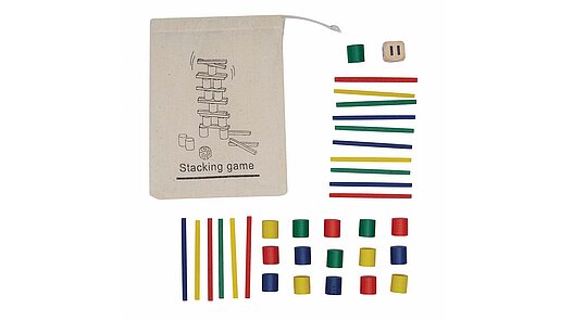 Ein unterhaltsames Geschicklichkeitsspiel, das Konzentration und Feinmotorik spielerisch trainiert. Die farbigen Stäbchen und Zylinder in den Grundfarben Gelb, Rot, Grün und Blau bringen nicht nur Freude ins Spiel, sondern regen auch die Wahrnehmung für Farben und Formen an. Mit dem stabilen Holzwürfel entstehen abwechslungsreiche Balance-Herausforderungen, bei denen Kinder Geduld, ruhige Hände und ein gutes Gespür für Gleichgewicht entwickeln. Dank der praktischen Verpackung im Baumwollbeutel bleibt das Spiel geschützt und ist leicht überallhin mitzunehmen .